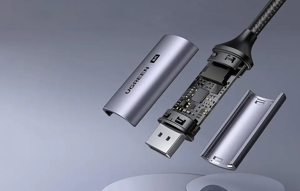 Kod produktu: 1025203Kabel Ugreen CM556 gwarantuje nie tylko wyjątkową jakość obrazu w rozdzielczości do 8K 60Hz, ale także płynność i stabilność transmisji. Dzięki zaawansowanym technologiom, takim jak HDR, HDCP2.3, eARC, VRR, i ALLM, zapewnia wyjątkowe wrażenia wizualne i audio, a także płynną rozgrywkę. Jego wszechstronność i kompatybilność sprawiają, że jest to idealny wybór zarówno dla profesjonalistów, jak i entuzjastów multimediów.Niezrównana jakość obrazuKabel Ugreen CM556 zapewnia wysoką jakość obrazu. Dzięki obsłudze rozdzielczości do 8K 60Hz oraz technologiom HDR, HDCP2.3 i eARC możesz cieszyć się nieskazitelnie czystym, szczegółowym obrazem z żywymi kolorami i głębokim kontrastem. To idealne rozwiązanie dla wymagających zastosowań, takich jak profesjonalna edycja wideo i zdjęć.Płynna rozgrywka bez zakłóceńDla graczy kabel Ugreen CM556 oferuje przewagę dzięki przepustowości do 32,4 Gb/s i wsparciu dla technologii VRR i ALLM. Te funkcje zapewniają płynniejszą rozgrywkę i redukcję opóźnień, co jest kluczowe zwłaszcza w szybkich grach FPS. To niezbędne narzędzie dla każdego, kto pragnie dominować na polu bitwy!Maksymalna wszechstronnośćKabel Ugreen CM556 obsługuje różne tryby wyświetlania, takie jak MST Daisy Chain, Samsung DeX Mode i Macbook Clamshell Mode.Szeroka kompatybilnośćTen kabel umożliwia podłączenie szerokiej gamy urządzeń. Jego kompatybilność z różnymi systemami operacyjnymi, w tym Windows, macOS, Linux, i iOS, sprawia, że jest to uniwersalne rozwiązanie dla każdego użytkownika.Wytrzymałość i niezawodnośćZaprojektowany z myślą o trwałości kabel Ugreen CM556 charakteryzuje się powłoką ze stopu aluminium i mocnym nylonowym splotem. Te materiały nie tylko zapewniają długotrwałą wydajność, ale także przyspieszają rozpraszanie ciepła, gwarantując stabilną transmisję obrazu przez długi czas.Najważniejsze cechy: