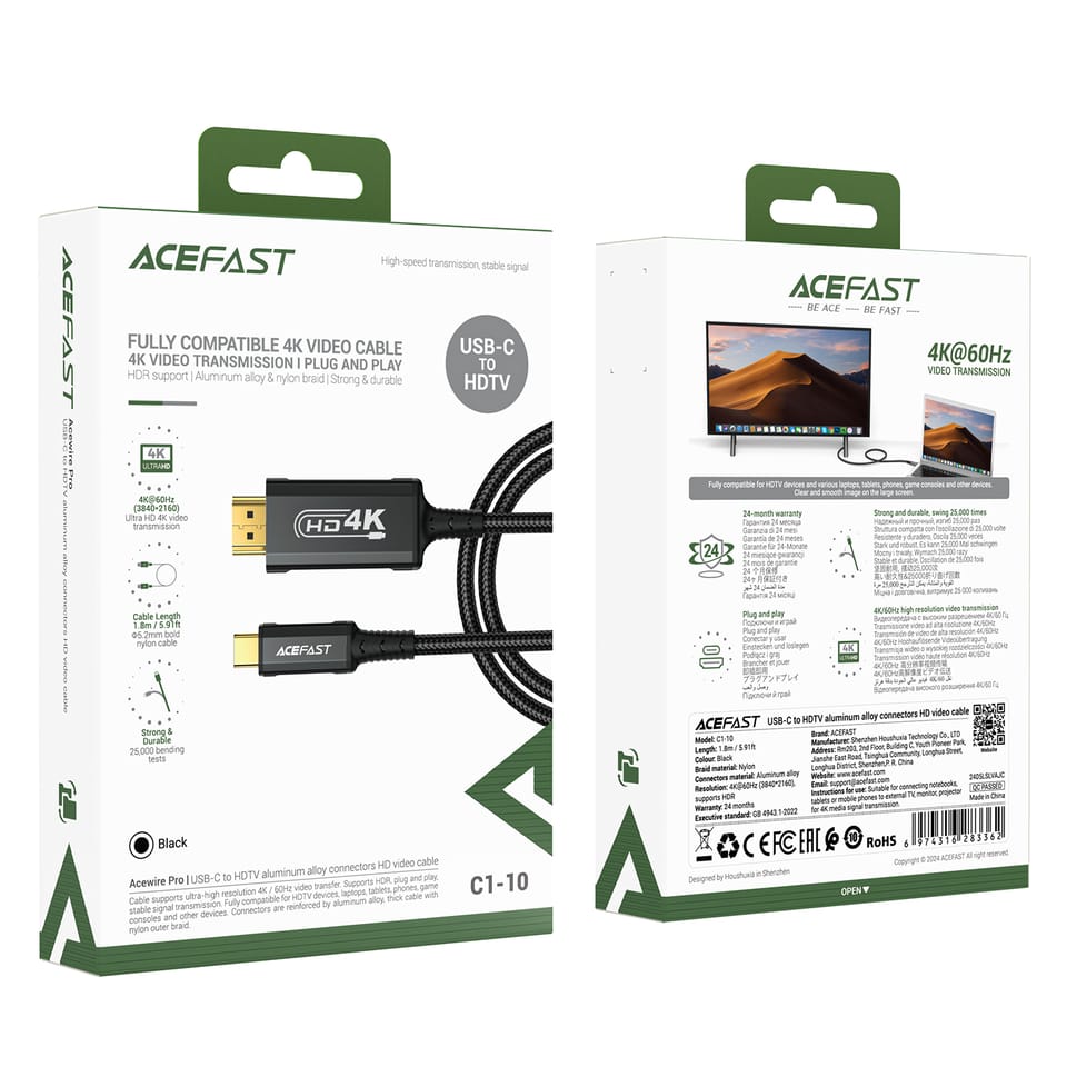 - - Gwarantuje kompatybilność z różnymi urządzeniami: Kabel Acefast C1 obsługuje laptopy, tablety, telefony oraz konsole do gier, umożliwiając łatwe połączenie z urządzeniami HDMI,