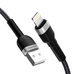 - - Kabel przewód do iPhone w oplocie USB-A - Lightning 2.4A 2m czarny
