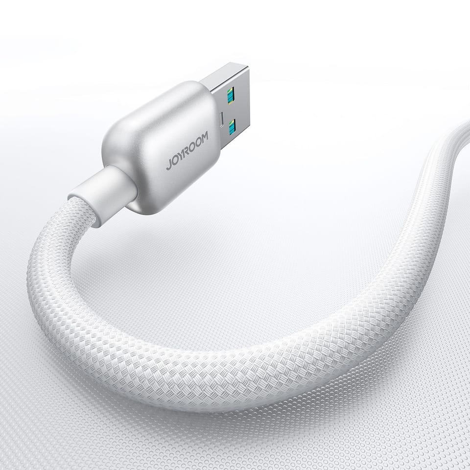 Kod produktu: 1031630Kabel Joyroom S-A55 StarFlight 66W USB-A - USB-C to inteligentne i wytrzymałe akcesorium stworzone do szybkiego, stabilnego i bezpiecznego ładowania urządzeń z portem USB-C. Funkcja automatycznego odłączenia zasilania po pełnym naładowaniu chroni baterię przed przeładowaniem, a inteligentna regulacja napięcia i natężenia zapewnia optymalne warunki ładowania nawet przy wysokiej mocy do 66 W. Wskaźnik LED z kolorowym podświetleniem pokazuje status ładowania w czasie rzeczywistym. Pleciony oplot nylonowy, cynowany miedziany rdzeń oraz metalowe elementy ze stopu cynku gwarantują wyjątkową trwałość i odporność na codzienne użytkowanie.Cechy produktu: