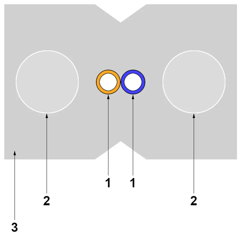 | Wybrane cechy: | Zatopione w powłoce pręty FRP zwiększające wytrzymałość mechaniczną kabla Prostokątny przekrój powłoki umożliwia gięcie kabla tylko w jednej płaszczyźnie Siła naciągu ≤ 80 N |