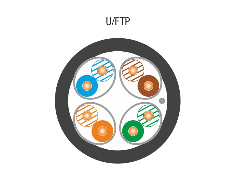 Przewód ekranowany U/FTP (Unshielded/Foiled Twisted Pair, oznaczenie zgodne z normą ISO/IEC 11801). Ekran w postaci folii aluminiowej został umieszczony się na każdej parze, dodatkowo pomiedzy parami a powłoką znajduje się drut uziemniający. Taka konstrukcja daje zwiększoną odporność na zakłócenia elektromagnetyczne (EMI) a indywidualne ekranowanie każdej pary eliminuje przesłuchy pomiędzy poszczególnymi parami oraz zwiększa odpornośc na uszkodzenia mechaniczne podczas instalacji (większa odpornośc na siłę ciągnienia). W porównianiu z kablami nieekranowanymi przewód może zapewnić wyższą jakość i bezpieczeństwo transmisji danych. Kabel ekranowany może znajdować się w bliskiej odległości od przewodów elektrycznych, sygnałowych i urządzeń mogących być źródłem lub nośnikiem zakłóceń elektromagnetycznych.