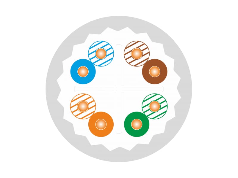 Żyły w pełni miedziane, pary oddzielone separatorem, ośrodek kabla nieekranowany, przeznaczony do pracy w środowisku nienarażonym na oddziaływanie zakłóceń elektromagnetycznych.