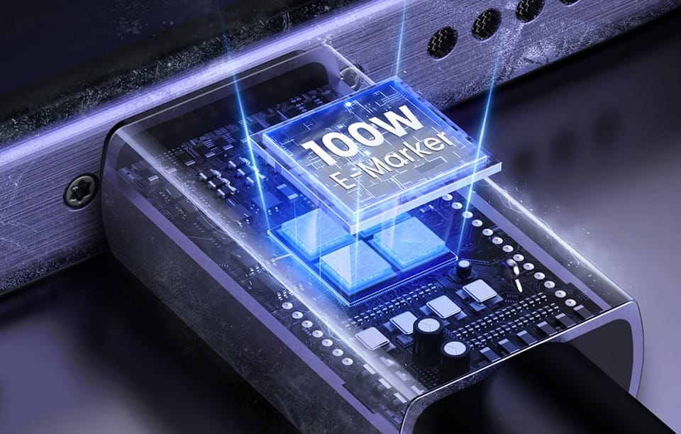 Kabel jest wyposażony w zaawansowany chip E-Marker, który automatycznie rozpoznaje podłączone urządzenie i dostosowuje moc ładowania. Dzięki temu zapewnia bezpieczne i efektywne ładowanie, chroniąc Twoje urządzenia przed przeciążeniem i przegrzewaniem.