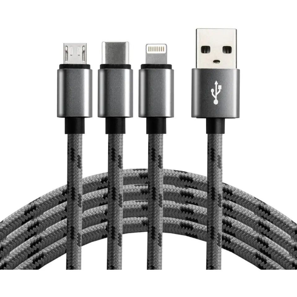Kabel USB-A -> USB-C/microUSB/Lightning 3w1 1,2m 2,4A pleciony czarny EVERACTIVE CBB-1.2MCI