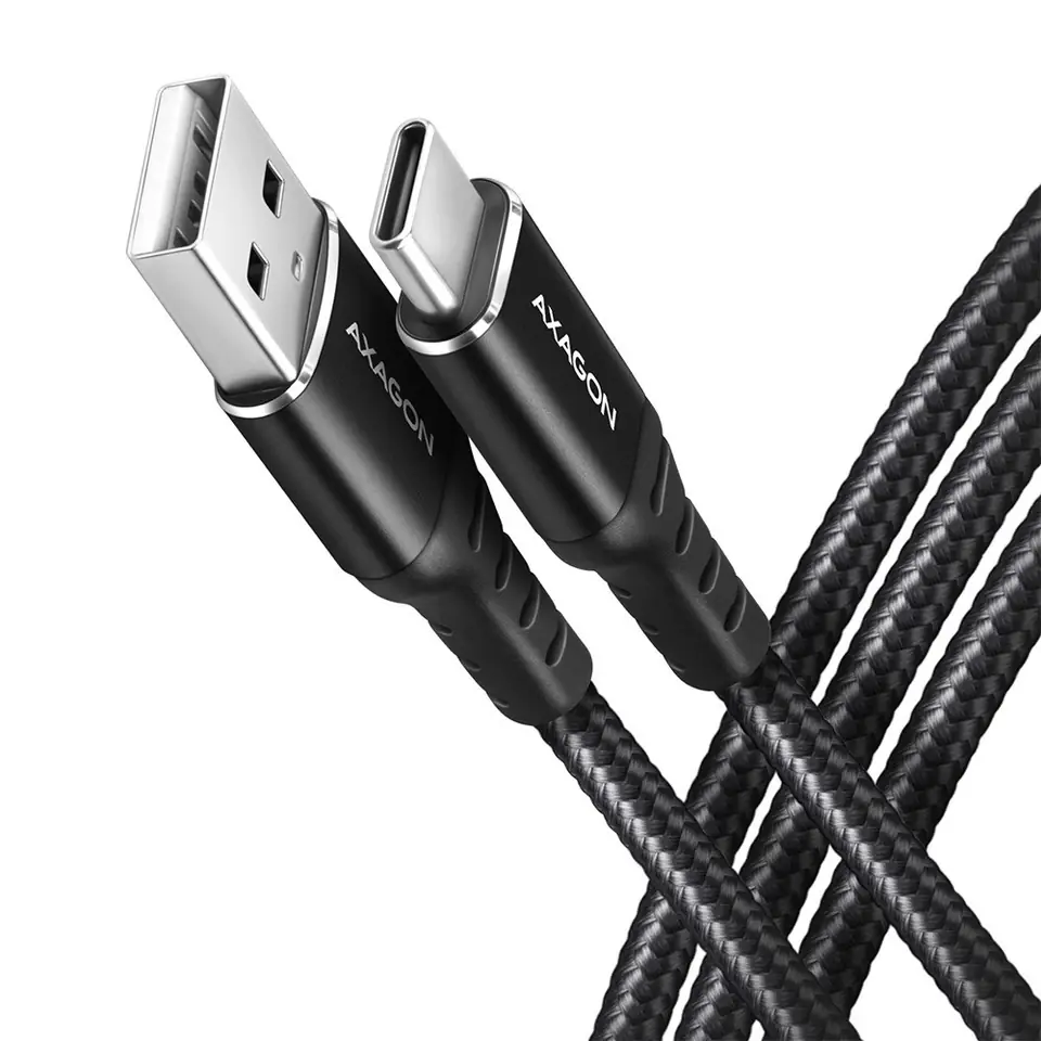 Kabel interkonektowy premium USB-C USB-A do transmisji danych i ładowania AXAGON BUCM-AM10AB HQ USB 2.0 z USB- C male i USB-A male złączami. Kabel przeznaczony jest do synchronizacji danych i ładowania telefonów, tabletów i innych urządzeń mobilnych. Obsługuje transfer danych do 480 Mb/s i ładowanie prądem do 3A. Kabel jest kompatybilny z technologiami ładowania Quick Charge, Samsung AFC, Huawei FCP, SMART i innymi.