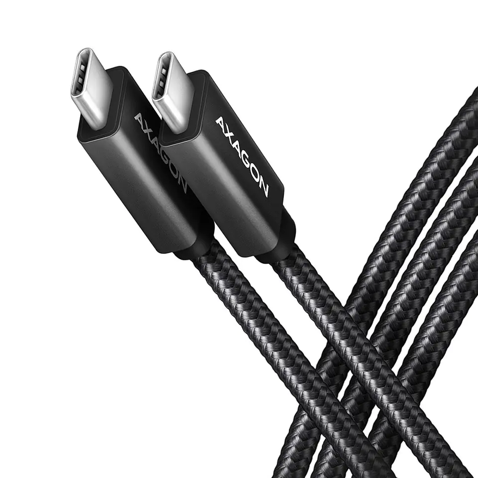Kabel interkonektowy premium USB-C <-> USB-C do transmisji danych i ładowania AXAGON BUCM32-CM10AB SPEED+ USB 20Gbps (3.2 Gen 2x2) posiada złącza USB-C męskie na obu końcach. Jest przeznaczony do bardzo szybkiego transferu danych, przesyłania wideo oraz ładowania laptopów, telefonów, tabletów i innych urządzeń mobilnych o mocy do 100 W. Umożliwia podłączenie monitorów, stacji dokujących oraz zewnętrznych dysków SSD.