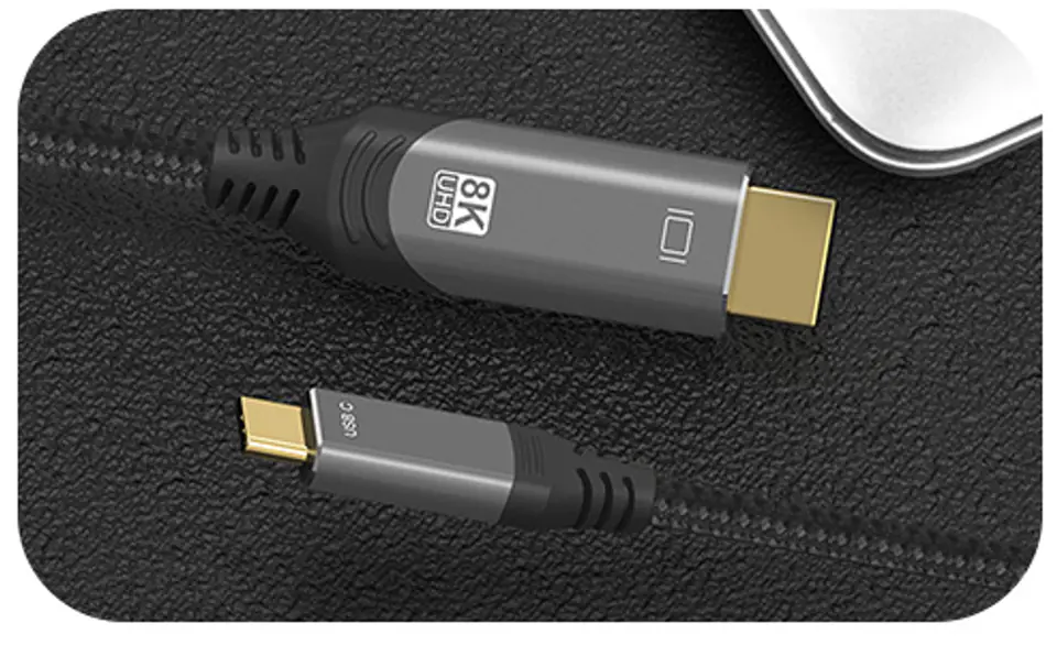 Jednokierunkowy kabel USB-C na HDMI pozwalający na przesyłanie sygnału z latpopa, telefonu, tabletu, w rozdzielczości do 8K lub 4K@60Hz. Przewód zapewnia płynność oraz stabilność transmisji.