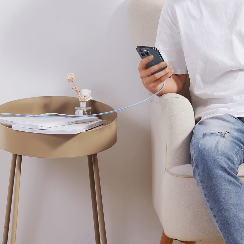 Kabel ładuje z mocą 20 W i obsługuje protokół Power Delivery. W zaledwie 30 minut jest w stanie naładować baterię iPhone aż w 50%. Pozwala to na oszczędzenie czasu, który można przeznaczyć na przyjemniejsze rzeczy.