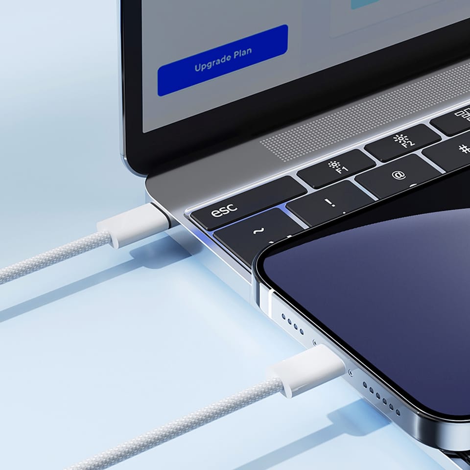 Kabel Joyroom S-A45 Ben posiada grubsze, ulepszone miedziane rdzenie pokryte cyną, co znacząco przyspiesza ładowanie. Dzięki temu możesz cieszyć się błyskawicznym ładowaniem urządzeń Apple – kabel obsługuje szybkie ładowanie PD o mocy 30 W, dzięki czemu odnowienie energii Twojego iPhone'a do 65% zajmuje zaledwie 30 minut.