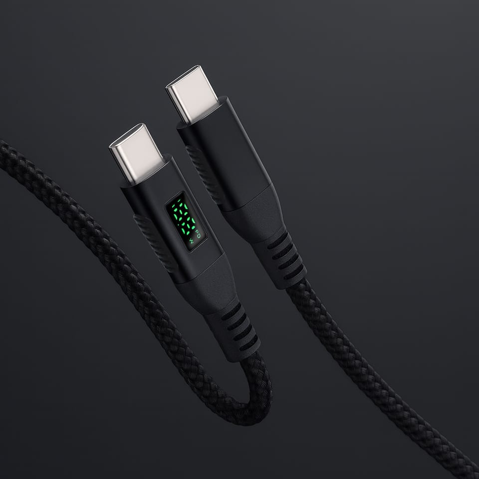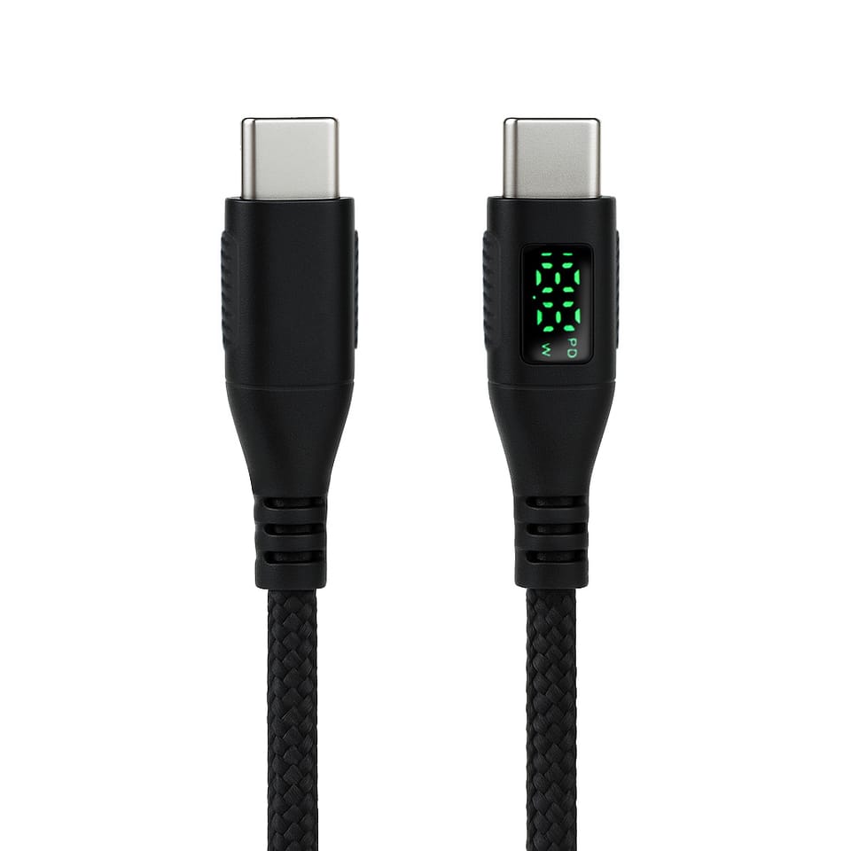 KABEL USB-C męski - męski 480Mbps 100W 1m ART czarny, oplot, wyświetlacz