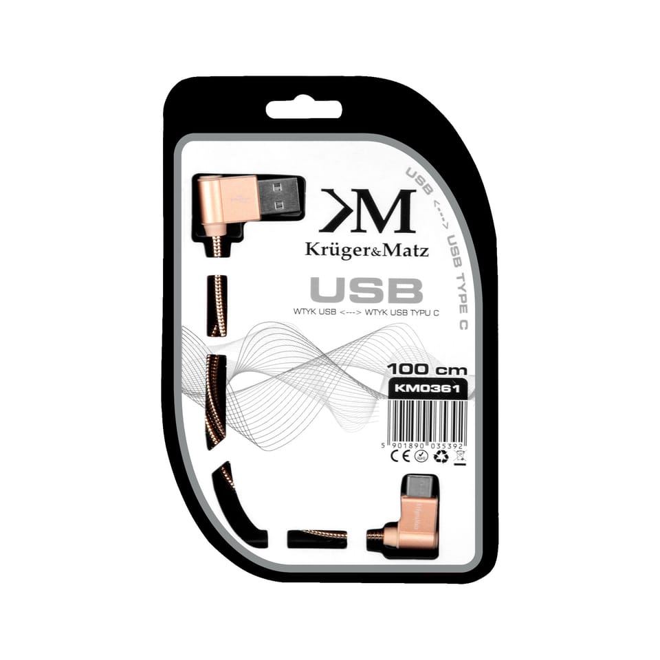 Kabel USB - wtyk kątowy typu C 1m 3A Kruger&Matz
