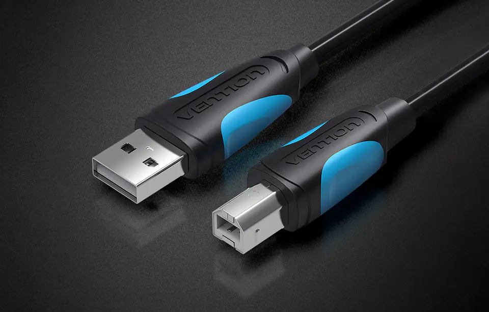 Za pomocą kabla Vention podłączysz drukarkę do komputera – produkt został wyposażony w porty USB-A oraz USB-B. Zapewnia stabilną transmisję sygnału o prędkości do 480 Mbps, a dzięki przemyślanej konstrukcji zapobiega zakłóceniom elektromagnetycznym. Kabel podłączysz także do zewnętrznego dysku lub karty dźwiękowej.