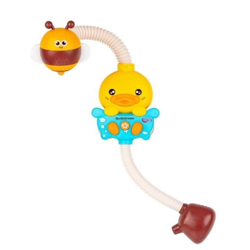 Kaczorek Wesoły Prysznic Kaczorek i pszczółka to wesoły duet, który umili maluchom kąpiel! Wystarczy, za pomocą przyssawek, przymocować kaczorka do ściany wanny, umieścić pompkę w wodzie i gotowe. Po naciśnięciu przycisku, pszczółka tryśnie wodą! Wyginaj ramię zabawki w dowolny sposób, dostosowując tym samym kierunek strumienia wody do swoich potrzeb. Cechy produktu: - zabawa w 3 krokach: zanurz pompkę w wodzie, naciśnij przycisk na wannie, obserwuj jak pszczółka tryska wodą; - giętkie ramię; - przyssawki do przymocowania zabawki; - baterie: 4 x AA (niezawarte w zestawie); Wiek: 18m+