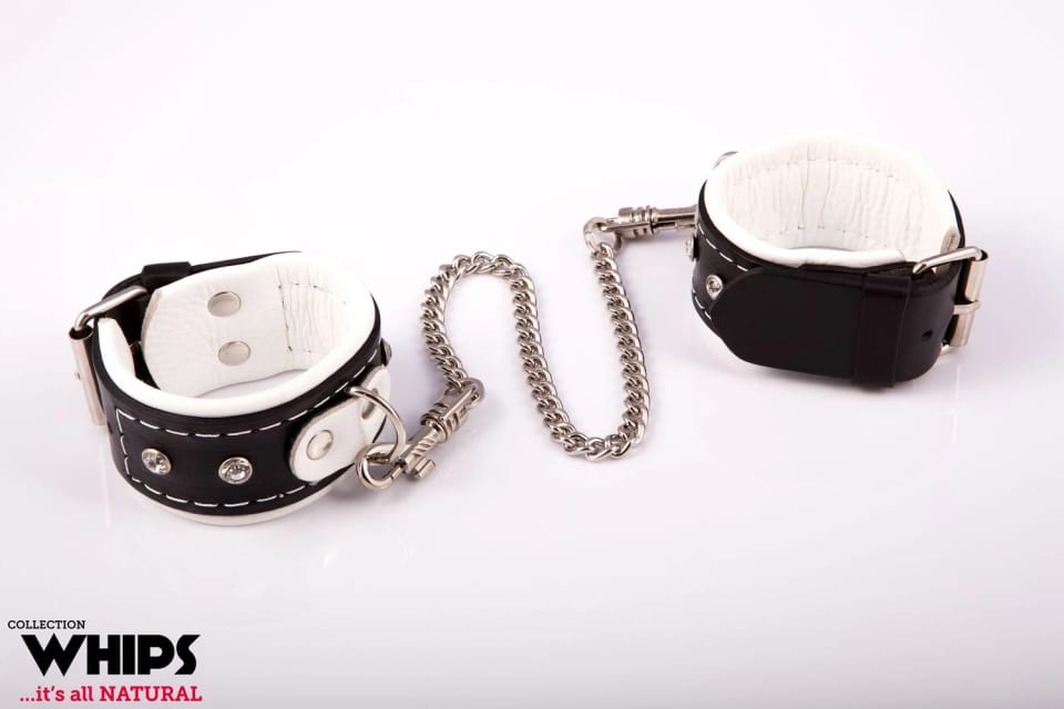 Zakuj swoją partnerkę w te naturalnie skórzane kajdany od marki WHIPS! Jej ręce nie wyślizgną się spod regulowanych zapięć, a łączący je łańcuszek zagwarantuje ich nierozerwalność.