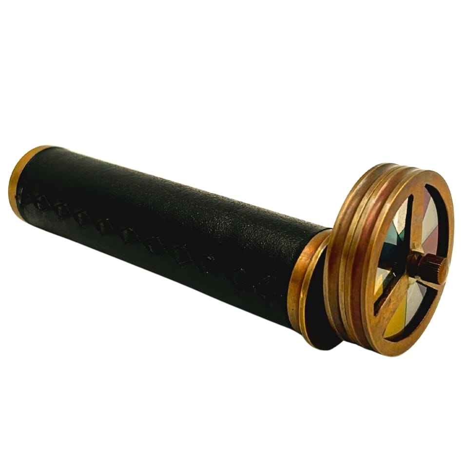 Kalejdoskop Styl Vintage Retro - Mosiądz Skóra - Elegancki Prezent Prezentujemy kalejdoskop kolekcjonerski, który jest synonimem, trwałości i stylu retro. To nie tylko przyrząd optyczny, ale przede wszystkim elegancki dodatek, który przywraca magię dzieciństwa w wyrafinowanym wydaniu. Jest to produkt kolekcjonerski, który świetnie sprawdzi się jako ponadczasowy upominek dla dziadków lub rodziców. Kalejdoskop wykonany jest z mosiądzu i pokryty sztuczną skórą. Informacje o produkcie: • Materiał: Mosiądz, szkło, skóra • Wymiary: Długość 18 cm, Średnica 5,5 cm Wysokiej Jakości Materiały i Wykończenie Ten kalejdoskop to inwestycja w piękny, ponadczasowy przedmiot: • Korpus: Wykonany z solidnego mosiądzu – materiału cenionego za swoją trwałość i szlachetny wygląd. • Wykończenie: Pokryty elegancką skórą, co sprawia, że jest przyjemny w dotyku i prezentuje się niezwykle stylowo. • Wygląd: Styl retro/vintage sprawia, że idealnie wpasuje się w klasyczne wnętrza, biura i gabinety. Idealny Prezent Premium i Element Dekoracyjny Ten unikalny przedmiot jest idealny jako: • Ponadczasowy Upominek: Doskonały prezent dla dziadków lub rodziców – osób, które docenią klasyczny design i pamiątkową wartość. • Element Dekoracyjny: Jest na tyle elegancki, że może służyć jako ozdoba na biurku, regale czy komodzie. To małe dzieło sztuki, które przyciąga wzrok.