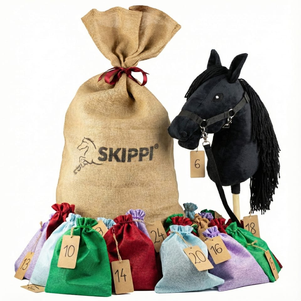 Spełnij świąteczne marzenie o Hobby Horsingu Podaruj ukochanej córeczce lub wnuczce prezent mikołajkowy, który sprawi, że tegoroczny grudzień na długo zostanie w jej pamięci.Kalendarz Skippi, przygotowany specjalnie z myślą o mikołajkach, skrywa aż 19 niezwykłych prezentów – wszystko, co w Skippi mamy najlepszego.6 grudnia dzieje się magia – dziewczynka otwiera pierwszy woreczek i znajduje w nim swojego wymarzonego konia. To nie jest zwykły prezent. To początek pięknej, świątecznej przygody.Każdego kolejnego dnia, aż do 24 grudnia, sięga po nowy drobiazg: derkę, kantar, ogłowie, nauszniki, smaczki, kubek, pelerynę i inne akcesoria, które stopniowo tworzą pełne wyposażenie jej konia. Rano czeka ją mały rytuał – szelest woreczka, nutka niecierpliwości i ta chwila zachwytu, gdy odkrywa, co dziś trafiło do stajni jej marzeń. Konik, który zaprasza do zabawy Hobby Horse Skippi to duży, starannie wykonany konik na kiju, który zachwyci każde dziecko kochające konie.To wspaniała zabawka, która zaprasza dziecko do zabaw ruchowych z przyjaciółmi.Zapytaj dziecko czy chce takiego konia i pokaż mu zdjęcie, a w mig rozwieje twoje wątpliwości. Dwustronna Derka – dwa razy więcej zabawy Każda strona derki ma inny kolor, co pozwala na zmianę wyglądu konika w zależności od nastroju czy okazji. To jak posiadanie dwóch derek w jednej, co daje możliwość szybkiej adaptacji do różnych scenariuszy zabaw lub występów. Staranne wykonanie każdej strony zapewnia, że obie są równie atrakcyjne i funkcjonalne. Dwustronna derka to doskonały wybór dla tych, którzy cenią sobie funkcjonalność połączoną z indywidualnym stylem. Kolorowy kantar dla Hobby Horse z wymiennymi futerkami Dodaj odrobinę koloru i stylu do zabawy z kantarem dla Hobby Horse! W zestawie znajdziesz dwie wymienne, zapinane na rzepy miękkie mufki. Możesz je umieścić na nosie lub po bokach kantara, tworząc różnorodne kombinacje. To świetny sposób na zabawę kolorami i personalizację wyglądu Twojego Hobby Horse. Dodatkowo istnieje możliwość dokupienia innych futerek, aby jeszcze bardziej urozmaicić zestaw. Idealny wybór dla miłośników kreatywnych detali! Stylowe ogłowie dla Hobby Horse Ogłowie Skippi to stylowy i praktyczy dodatek dla hobby horse, zaprojektowane tak, aby łączyć wygodę, trwałość i atrakcyjny wygląd. Wykonane z lekkich, miękkich materiałów doskonale układa się na głowie konika, a regulowane paski pozwalają idealnie dopasować je do modeli w rozmiarze A3.To świetny wybór dla każdego miłośnika hobby horsingu, który szuka połączenia komfortu i efektownego stylu. Smaczki, owoce i warzywa dla Hobby Horse Pluszowe warzywa, pluszowe owoce i zabawkowe kostki cukru dla hobby horse to idealne akcesoria do zabawy i treningu. Każdy smaczek jest miękki i przyjemny w dotyku, co zapewnia bezpieczną i angażującą zabawę. Ten zestaw nie tylko motywuje do aktywności fizycznej, ale również rozwija wyobraźnię, umożliwiając dzieciom tworzenie własnych przygód i scenariuszy podczas zabawy z ich hobby horse. Idealny jako nagroda lub zachęta podczas treningu, ten komplet pluszowych warzyw sprawi, że każda sesja z hobby horse będzie jeszcze bardziej ekscytująca i pełna radości. Peleryna inna niż wszystkie Elegancka i praktyczna peleryna dla konika na kiju, wykonana z wysokiej jakości materiału. Idealna na różne okazje, od codziennej zabawy po specjalne wydarzenia i pokazy. Jej unikalny design przyciąga wzrok, a konik wygląda w niej uroczo. Peleryna jest lekka, wygodna i wytrzymała, co gwarantuje doskonałą ochronę konika podczas przechowywania lub transportu. Kubek z uchwytem w kształcie głowy konia Pasja do koni to coś, co trudno opisać słowami – to miłość do ich siły, elegancji i wolności. Dla tych, którzy dzielą to wyjątkowe uczucie, powstał kubek z trójwymiarowym motywem konia, który łączy funkcjonalność z artystycznym designem. Jego starannie wykonane detale oraz ręcznie malowane zdobienia czynią go nie tylko praktycznym przedmiotem codziennego użytku, ale również symbolicznym wyrazem pasji i stylu. Dwustronna derka i nauszniki Derka i nauszniki to nie tylko stylowy i uroczy dodatek, ale również praktyczny element wyposażenia hobby horsa. Wykonane z wysokiej jakości materiałów, zapewniają ochronę przed zabrudzeniami i uszkodzeniami. Pozwalają na spersonalizowanie wyglądu konika, dodając mu niepowtarzalnego charakteru. To upominek, który na pewno sprawi radość i doda jeszcze więcej magii do każdej zabawy na hobby horsie. Kantar o skórzanym wyglądzie Elegancki kantar wykonany z miękkiej ekoskóry, ozdobiony metalowymi ćwiekami, które nadają mu charakteru. Dzięki regulowanym paskom ze sprzączkami doskonale dopasowuje się do głowy hobby horsa, zapewniając realistyczny, jeździecki wygląd. Przemyślane i wykonane dbałością o każdy detal akcesoria hobby horse to idealny wybór dla miłośniczek hobby horsingu. Akcesoria niespodzianki dla Hobby Horse W kalendarzu znajdziesz też kilka niespodzianek, które dodadzą całej zabawie wyjątkowego uroku. To małe, nieoczywiste prezenty, które pojawią się pomiędzy głównymi elementami zestawu. Dzięki nim każdy dzień będzie jeszcze ciekawszy, a oczekiwanie na Święta – pełne radości i małych odkryć.