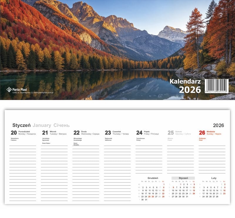 Kalendarz biurkowy poziomy 2026 0405-0902-99 Panta Plast - Wymiar: 29,5 x 12,2cm