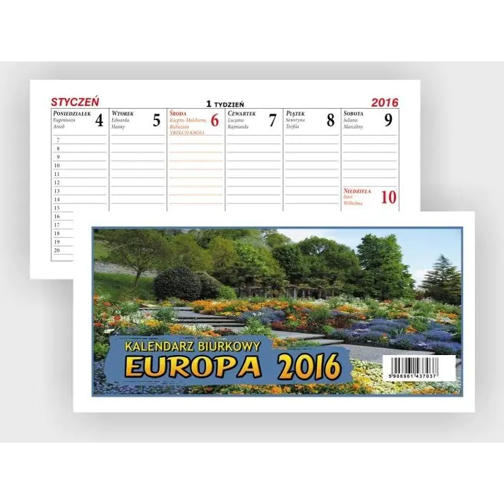 Kalendarz biurowy lezący Europa posiada klasyczny uklad z tygodniem na jednej stronie . Idealnie sprawdzi sie do zapisywania najwazniejszych informacji dotyczących danego dnia.