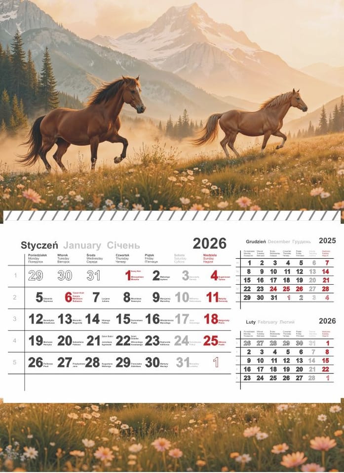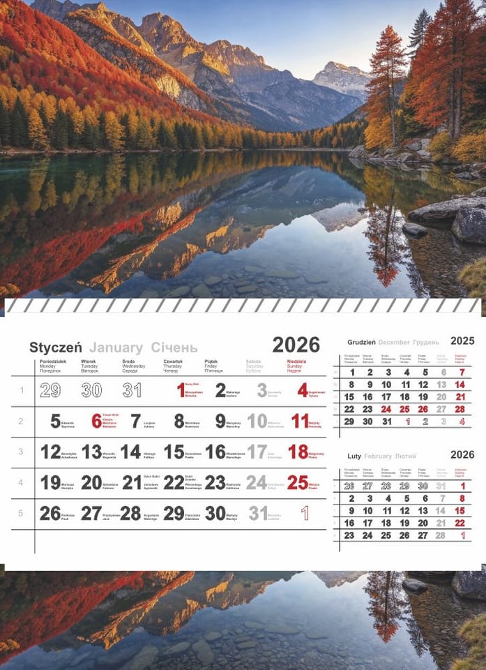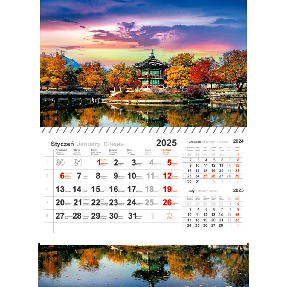 - Wymiar kalendarza: wys. 430 mm, szer. 310 mm.