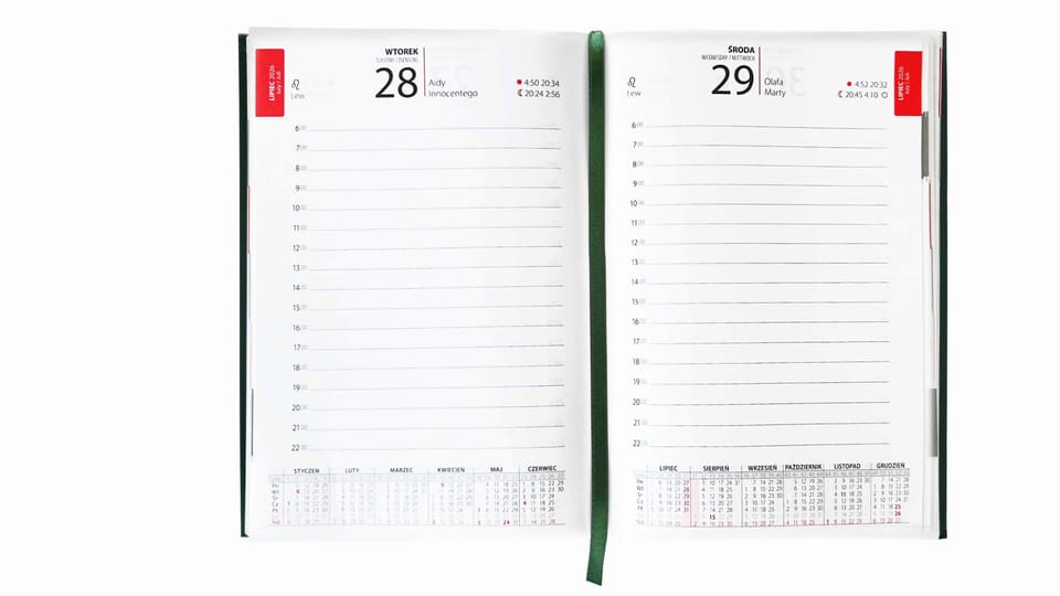 Kalendarz książkowy A5 dzienny w wersji ekonomicznej.- Soboty i niedziele na oddzielnych stronach