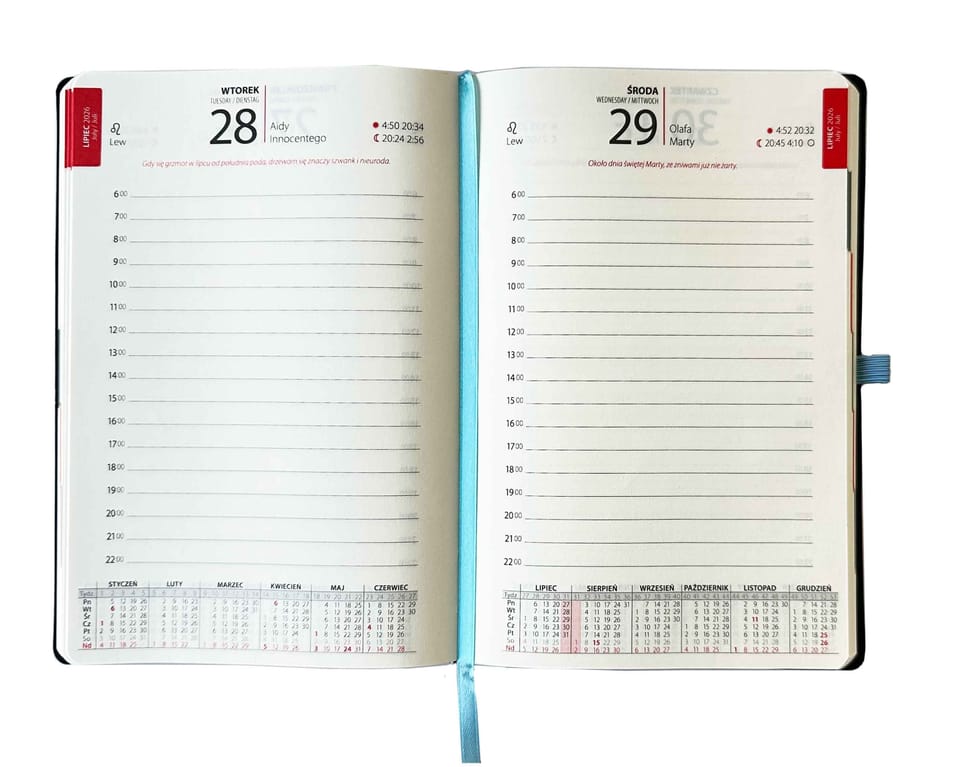 Kalendarz książkowy A5 dzienny w wersji Flex.- soboty i niedziele na oddzielnych stronach