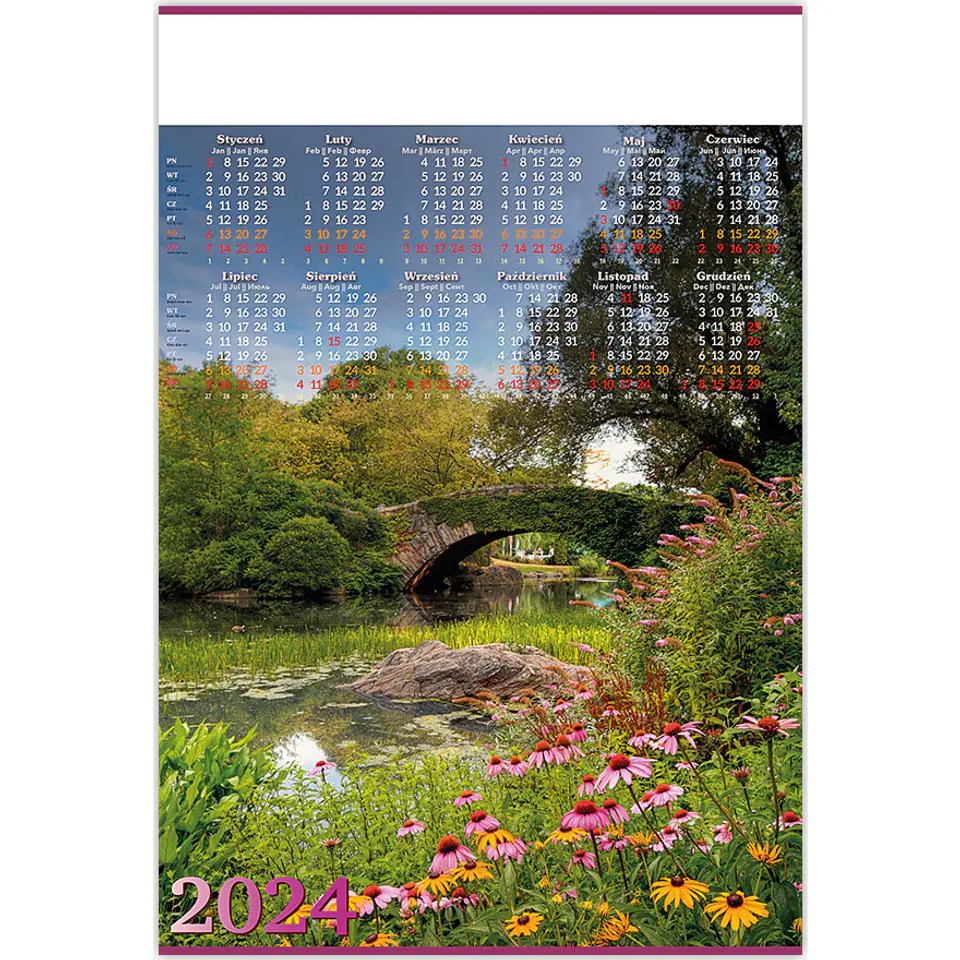 Kalendarz plakatowy B1 wyróznia sie odpowiednio dobranym zdjeciem oraz przejrzystym kalendarium .