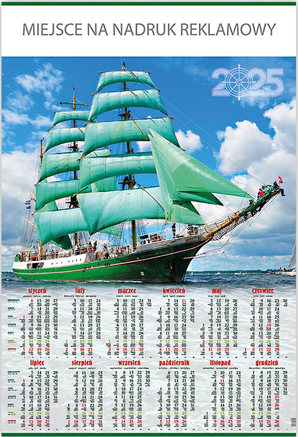 Kalendarz plakatowy B1 wyróznia sie odpowiednio dobranym zdjeciem oraz przejrzystym kalendarium .