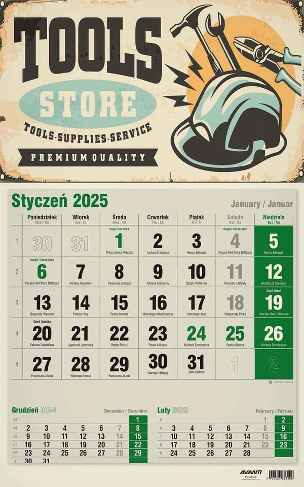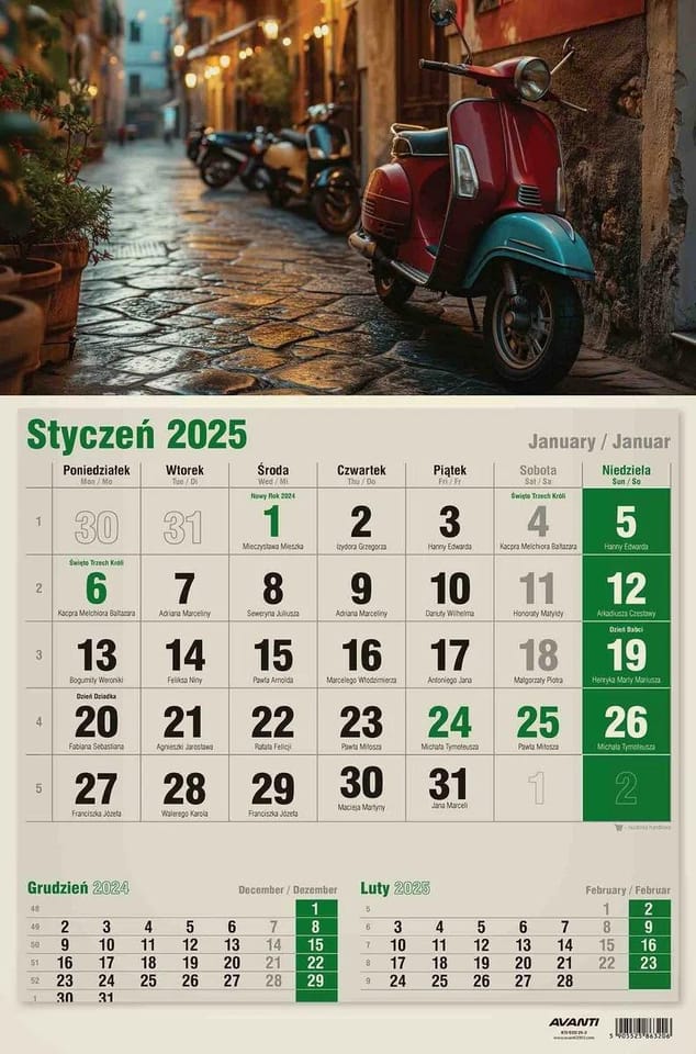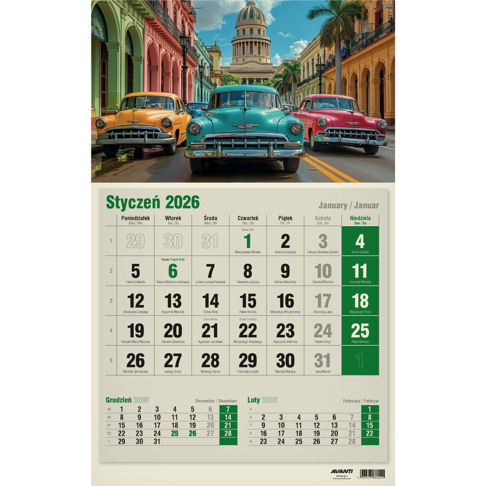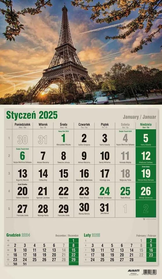 Kalendarz ścienny jednodzielny KTJ EKO AVANTI Kalendarz Jednodzielny pasuje wszędzie tam, gdzie na trójdzielny brakuje miejsca, a zależy nam na podglądzie poprzedniego i następnego miesiąca.