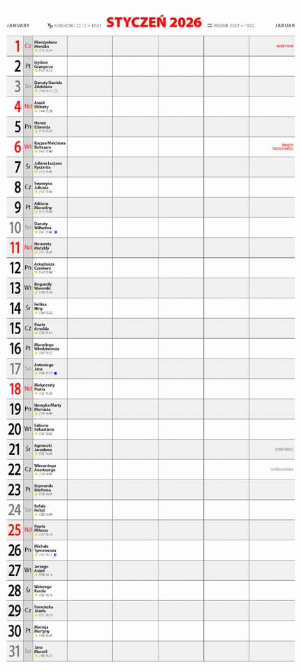 KPD-6 TerminarzRodzinny kalendarz ścienny, drukowany na papierze niepowlekanym dla łatwego notowania.