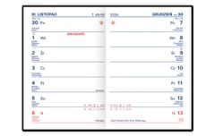 Kalendarz TIK wystepuje w formacie 82 × 120 mm w ukladzie tydzien na stronie .
