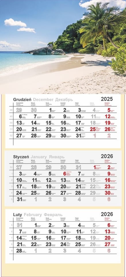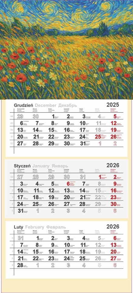 Kalendarz trójdzielny 2026 0905-99 Panta Plast - Wymiar kalendarza: szer. 310 mm wys. 700 mm.