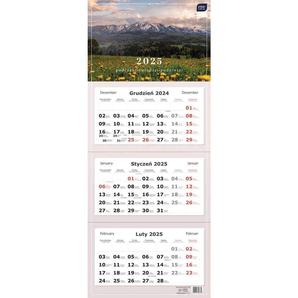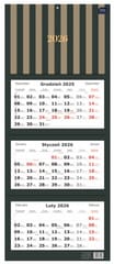 Kalendarz trójdzielny 2026 82,5x34cm Paski INTERDRUK - Kalendarz trójdzielny o wymiarach 34x82,5 cm.