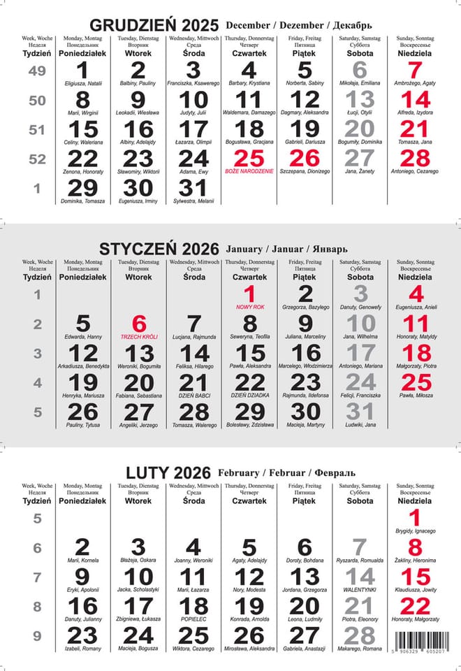 - Wymiary kalendarza: 28,5 x 71,5 cm
