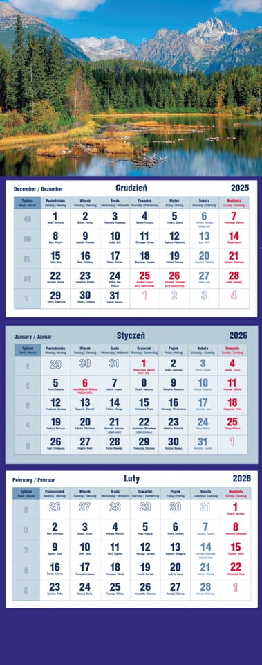 Zostal zaprojektowany w taki sposób, abyś mial wszystkie niezbedne informacje pod reką. Uklad kalendarium obejmuje trzy miesiące, co ulatwia planowanie i monitorowanie waznych dat .