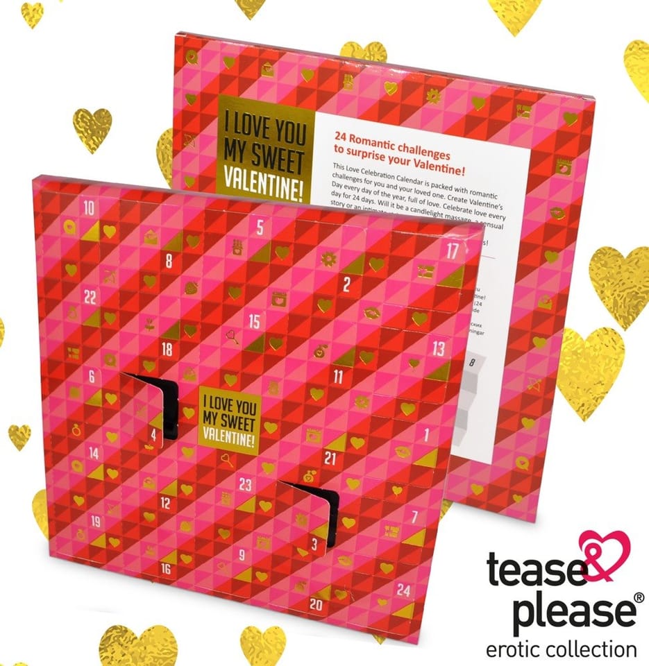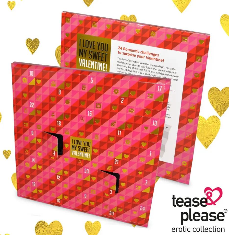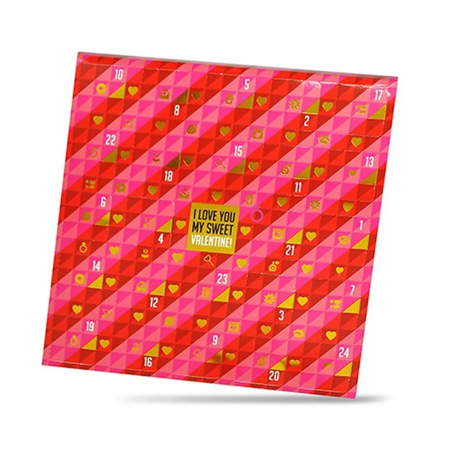 Ten kalendarz zawiera 24 erotyczne zadania, które obiecują urozmaicony i ekscytujący czas dla dwojga. Po prostu na zmianę otwieraj drzwi i ciesz się kreatywnymi pomysłami. Każdy z nich jest drukowany w 10 językach (NL, DE, EN, FR, ES, IT, PL, RU, SE, NO), aby każda para mogła się nimi cieszyć.