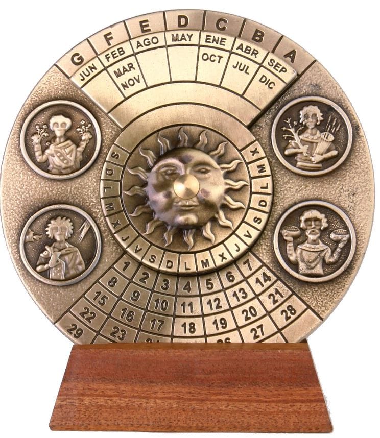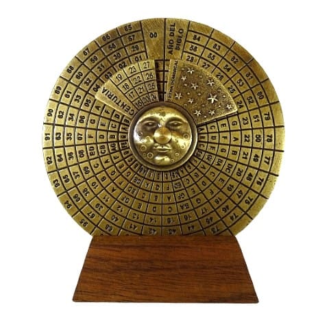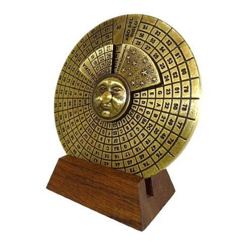 KALENDARZ WIECZYSTY RENESANSOWY – OD 1600 DO 2799 ROKU Kalendarz wieczysty to fascynujący przyrząd, który umożliwia znalezienie każdego dnia tygodnia w ogromnym zakresie lat: 1600-2799! W mechanizmie wykorzystano historyczny system Dominical Letters (litery niedzielne), a jego wykonanie nawiązuje do bogato zdobionego stylu renesansowego. To połączenie zabytkowej techniki z elegancją. ________________________________________ DLACZEGO WARTO • Historyczny Zegarek Czasu: Umożliwia obliczenia dat w zakresie ponad 1000 lat (1600-2799). • Unikatowa Dekoracja: Pięknie zdobiony, renesansowy styl sprawia, że świetnie prezentuje się na biurku menadżera lub w gabinecie. • Wartość Edukacyjna: Pokazuje stary, innowacyjny system Dominical Letters, idealny dla miłośników historii nauki. • Gotowy Prezent: Dostarczany z eleganckim, prezentowym pudełkiem z wypraską. • Instrukcja w Językach Obcych: Dołączona oryginalna instrukcja obsługi w kilku językach (angielski, francuski, hiszpański, włoski). ________________________________________ IDEALNY UPOMINEK DLA • Miłośnika Historii: Fascynujący zabytkowy gadżet techniczny. • Menadżera/Szefa: Prestiżowy dodatek do biura, symbolizujący planowanie na lata. • Fana Astrologii/Astronawigacji: Nawiązanie do dawnych metod obliczeń czasu. ________________________________________ INFORMACJE O PRODUKCIE • Wymiary: Śr. 9 cm, głębokość 6 cm • Styl: Renesansowy • Zakres działania: 1600-2799 lat • System: Litery Niedzielne (Dominical letters) • Język Instrukcji: Angielski, Francuski, Hiszpański, Włoski • Opakowanie: Eleganckie, prezentowe pudełko z wypraską ________________________________________ JAK UŻYWAĆ KALENDARZA (INSTRUKCJA SKRÓCONA) Kalendarz działa na zasadzie dopasowywania roku i miesiąca do litery niedzielnej (Dominical Letter). • Najpierw po stronie księżyca dopasuj rok. Wyszukaj literę niedzielną. • Następnie po stronie słońca dopasuj miesiąc (np. MAR dla marca) do znalezionej litery. • Na dolnej tarczy znajdź szukaną datę (np. 2-gi dzień) i odczytaj, pod jaką literą dnia tygodnia się znajduje. • Kalendarz opiera się na skrótach dni tygodnia i miesięcy w języku hiszpańskim (tłumaczenia podane w instrukcji).