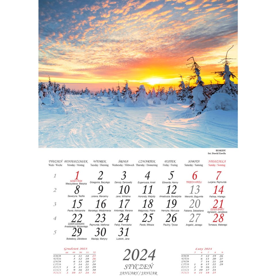 KALENDARZ WIELOPLANSZOWY ŚCIENNY na 2024 rok Polskie Krajobrazy 29x50,5cm