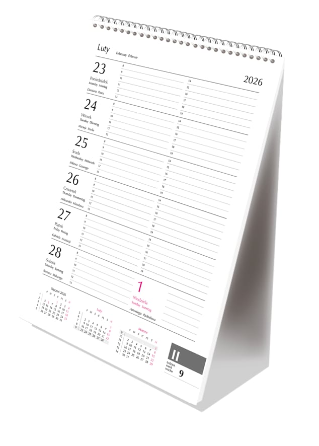 Terminarz ze spiralką to idealny towarzysz dla osób, które cenią sobie organizacje, styl i wysoką jakośc . Z nim wazne spotkania, istotne daty i codzienne obowiązki bedą zawsze pod kontrolą.