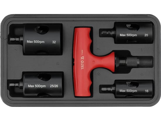 Dodatkowo zestaw może być używany w połączeniu z wkrętarką, co przyspiesza pracę przy większej liczbie obróbek. Zaleca się stosowanie obrotów nieprzekraczających 500 obr./min, aby zachować pełną kontrolę nad procesem kalibracji oraz nie uszkodzić krawędzi rury ani narzędzi.
