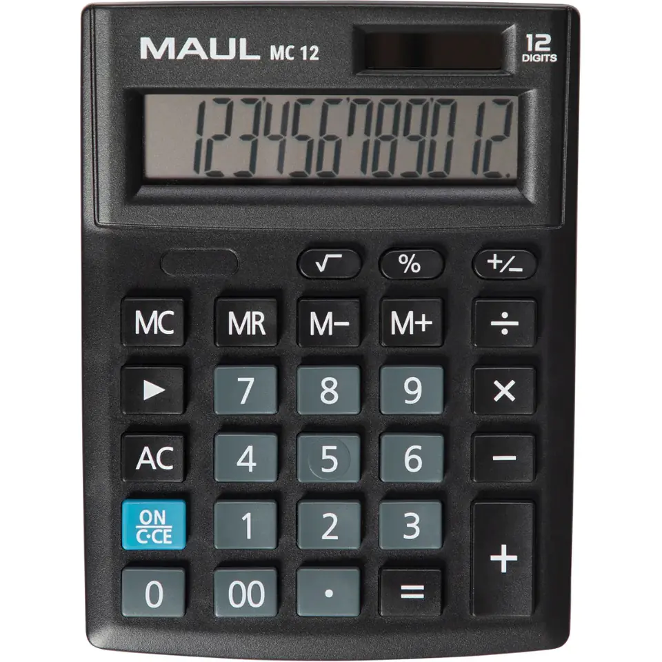 Solidny, wytrzymaly kalkulator biurkowy MAUL MC 12 w kolorze czarnym z duzym, 12-pozycyjnym wyświetlaczem LCD. Niezawodny, dokladny i o profesjonalnym wyglądzie. Szybsze wyszukiwanie: przyciski funkcyjne i numeryczne w róznych kolorach. Ergonomiczny: wyświetlacz umieszczony pod kątem dla ulatwionego odczytu. Kompaktowy rozmiar i zaokrąglone krawedzie sprawiają, ze dobrze lezy w dloni i nie zajmuje duzo miejsca na biurku. Przyciski z tworzywa sztucznego: wytrzymale i latwe do czyszczenia. Z antypoślizgowymi, gumowymi punktami na odwrocie. Energooszczedny, dzieki podwójnemu zasilaniu baterią i baterią sloneczna, z funkcją automatycznego wylączania. Wyposazony w 3 przyciski pamieci, obliczanie pierwiastków kwadratowych, procentów, przycisk z podwójnym zerem, zmiana znaku oraz przycisk do kasowania ostatniej pozycji. Gwarancja: 5 lat. Wymiary: 13,7 x 10,3 x 3,1 cm. Zawiera jedną baterie (LR1130). Ekologiczne opakowanie z tektury, bez uzycia plastiku, z eurozawieszką.