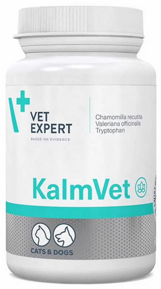 KalmVetWskazania:Preparat wspomagający przeznaczony dla psów i kotów do łagodzenia objawów stresu, niepokoju, agresji oraz wszelkich zaburzeń behawioralnych, np.: strach przed burzą, wystrzałami, przed planowaną podróżą, przeprowadzką, gdy ma się pojawić nowy domownik. Szczególnie polecany u kotów z objawami idiopatycznego zapalenia pęcherza moczowego. Podawany z wyprzedzeniem w naturalny, łagodny, długofalowy i skuteczny sposób przeciwdziała szkodliwym objawom stresu.Skład:olej sojowy, suszony rumianek, mono- dwu- i trójglicerydy kwasu stearynowego, lecytyna surowaDodatki:L-tryptofan 111,1 g, Kozłek lekarski - ekstrakt (Valeriana officinalis) 44,4 g,Analiza:białko 13,55%, tłuszcz 23,56%, popiół 8,99%, wilgotność 2,58%Dawkowanie: