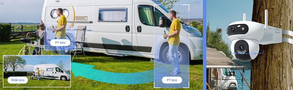 - Podwójny obiektyw 4MP + 4MP (2K+) – jednoczesny podgląd szerokiego obszaru i detali