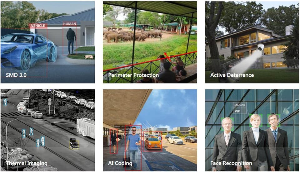 | Inteligentna analiza obrazu: | przekroczenie linii wtargnięcie klasyfikacja ludzi i pojazdów zmiana sceny Wykrywanie sabotażu wideo Obsługa AcuPick - technologia wykorzystująca sztuczną inteligencję zarówno front-end, jak i back-end w przeszukiwaniu ogromnych ilości danych wideo w celu szybkiego lokalizowania celów z dużą precyzją Quick Pick - technologia AI umożliwiająca wraz z rejestratorem szybką identyfikację interesujących obiektów (ludzi/pojazdów) w oparciu o algorytm sztucznej inteligencji. Pozwala wyodrębniać i porównywać kolory ubrań oraz pojazdów AI SSA - ang. AI Smart Scene Adaptive - autoadaptacja sceny wykorzystująca algorytmy głębokiego uczenia do wykrywania warunków środowiskowych, takich jak deszcz, mgła, podświetlenie, słabe światło i migotanie, w celu ustawienia optymalnych parametrów obrazu SMD 4.0 - wyszukiwanie obiektu sklasyfikowanego jako: człowiek, pojazd silnikowy - zwiększona odległość wykrywania i odporność na fałszywe alarmy |