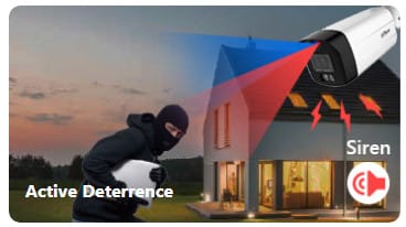 | Wybrane funkcje: | Aktywne odstraszanie intruzów działa na zasadzie migającego niebieskiego i czerwonego światła oraz dźwięku syreny lub komunikatów głosowych WDR - 120 dB - Szeroki zakres dynamiki oświetlenia 3D-DNR - Cyfrowa redukcja szumu w obrazie F-DNR (Defog) - Redukcja szumów związanych z opadami atmosferycznymi ROI - poprawianie jakości wybranych fragmentów obrazu BLC/HLC - kompensacja światła tła / silnego światła Full Color - kolorowy tryb nocny Wbudowany oświetlacz światła białego (LED) Tryb dzień/noc (color/b&w/auto) ICR - Mechaniczny filtr podczerwieni Automatyczny balans bieli AGC - Automatyczna regulacja wzmocnienia obrazu Obrót obrazu i odbicie lustrzane Detekcja ruchu Konfigurowalne strefy prywatności |