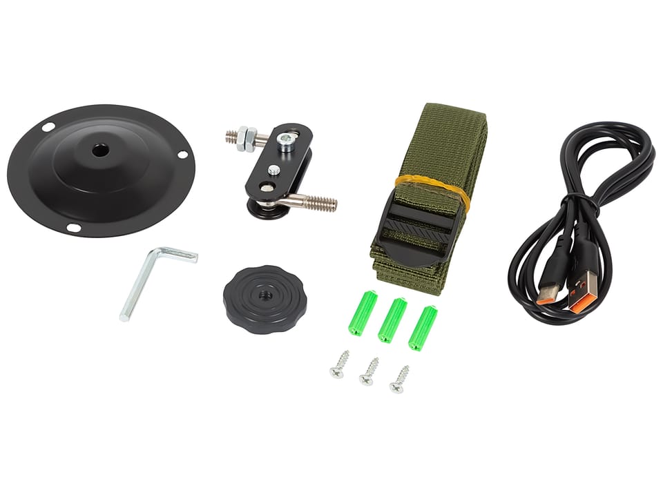 - Zasilanie: akumulator 5200 mAh + panel solarny + 4× AA