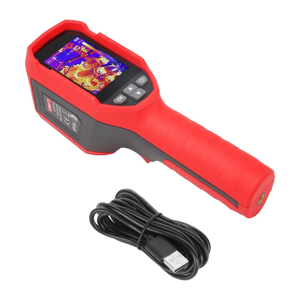 -----------PARAMETRY GŁÓWNE-----------Zakres temperatury: -20°C ~ 550°CDokładność: ±2°C lub ±2%Rozdzielczość pomiaru: 0,1°CRozdzielczość przetwornika IR: 160 x 120 pxWielkość piksela: 12 µmWrażliwość widmowa: 8~14 µmCzułość przetwornika IR: Pole widzenia: 40°x30°Chwilowe pole widzenia: 3,1 mradMinimalna odległość pomiaru: 0,1 mEmisyjność: Regulowana (0,01-1)Tryby pracy: kamera termowizyjna, tryb mieszany, PIPPalety kolorów: 7Format zapisu: JPGPamięć: 32 GB (wbudowana)Wyświetlacz: 2,4” TFT LCDRozdzielczość: 320x240 pxLaser: klasa 2-----------CECHY OGÓLNE-----------Gniazdo karty microSDKlasa ochrony: IP54Odporność na upadki: do 2 mZasilanie: akumulator litowo-jonowy 3,7 V 2600 mAhCzas pracy: >6 godzinŁadowanie: 5V / 2 AWymiary: 197 x 72 x 60 mmWaga: 326 gAkcesoria: przewód USB-CCertyfikaty: RoHS, CE, UKCA, FCC