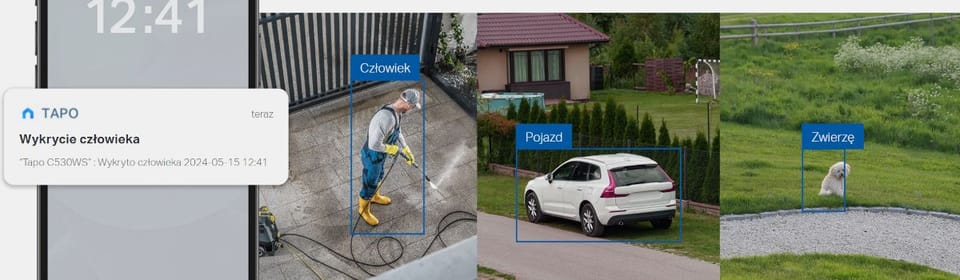 Kamera Tapo C530WS to obrotowe urządzenie monitorujące, które zapewnia wyjątkową klarowność obrazu dzięki rozdzielczości 3K (2880 × 1620), oferującej więcej szczegółów niż standardowe kamery 1080p, zarówno w ciągu dnia, jak i w nocy, kiedy technologia kolorowej nocnej wizji Starlight z wbudowanymi reflektorami rejestruje żywe kolory nawet przy słabym oświetleniu. Jej kluczową zaletą jest pełny, panoramiczny zasięg 360° w poziomie i 130° w pionie, który eliminuje martwe strefy dzięki automatycznemu śledzeniu wykrytego ruchu; użytkownik może dodatkowo aktywować tryb patrolu, w którym kamera samodzielnie przemieszcza się pomiędzy wcześniej zaprogramowanymi punktami obserwacyjnymi. Zaawansowane wykrywanie oparte na sztucznej inteligencji precyzyjnie identyfikuje ludzi, zwierzęta i pojazdy, a także wykrywa próby sabotażu urządzenia lub przekroczenia wirtualnej linii, co minimalizuje liczbę fałszywych alarmów i dostarcza tylko istotnych powiadomień.