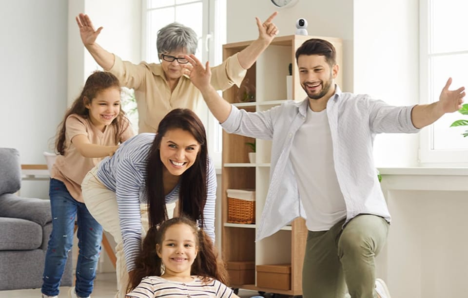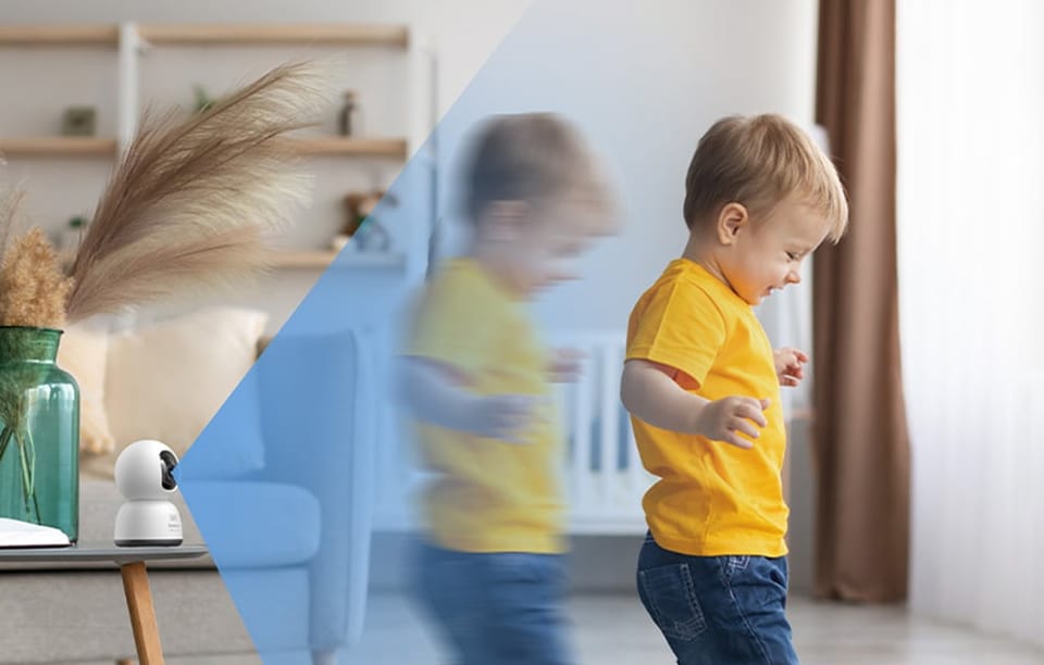 - - Automatyczne śledzenie ruchu: Obiektyw dynamicznie podąża za ruchem, zapewniając pełny wgląd w to, co dzieje się w pomieszczeniu.