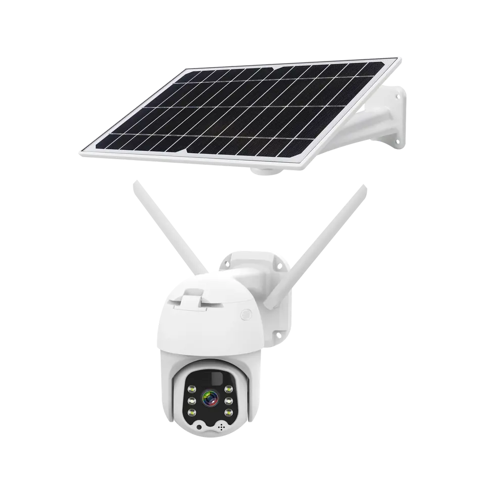 W zestawie: kamera, panel solarny, uchwyt panelu solarnego, śrubokręt, śruby, kołki
